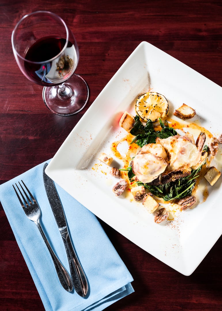 Bronzed and lightly crusted East Coast scallops served with a lemon chardonnay butter sauce.